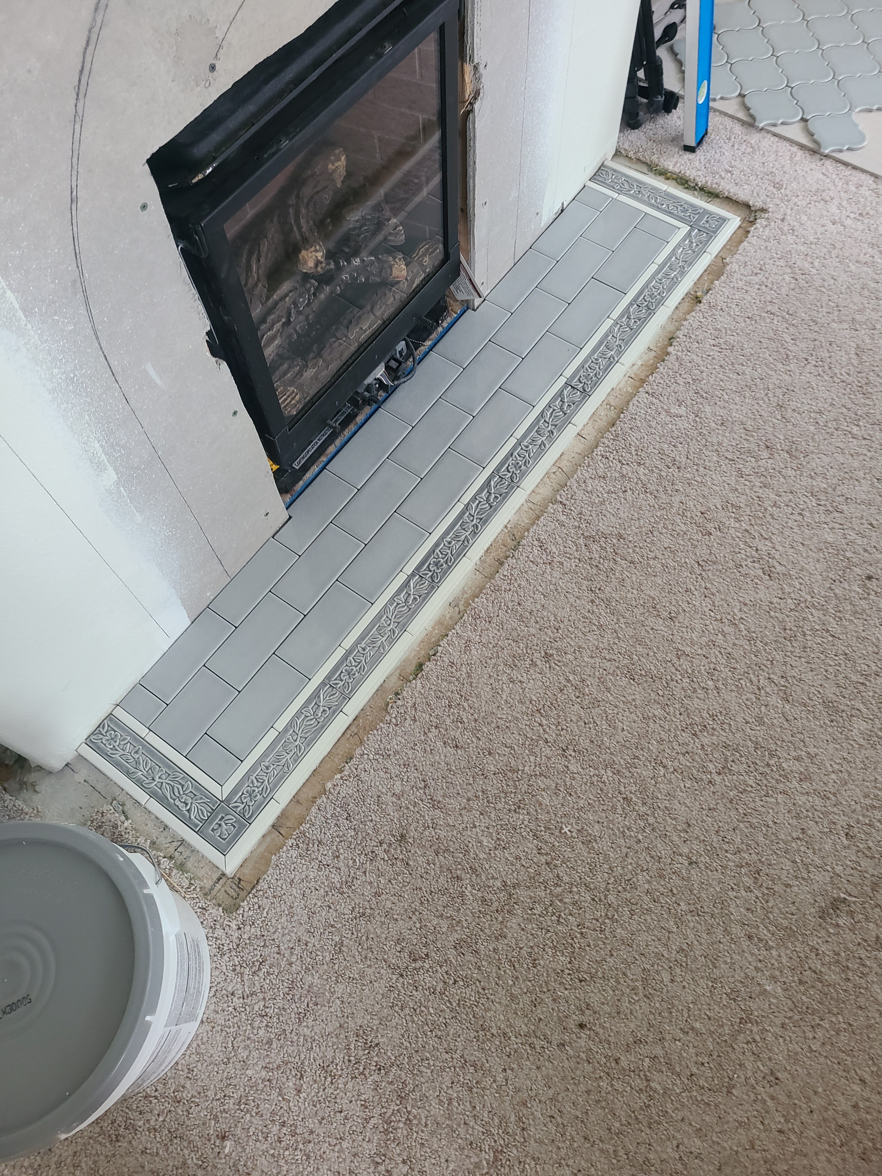 While we have been remodeling our master en suite, we have slowly been plugging away at the bedroom as well. Again, I don't really have any before pictures. But, we installed a faux beam over the window seat and added walnut window sills that are gorgeous. We are in the process of adding a custom fireplace and building out the window seat to be more functional and visually appealing. The fireplace will have an overmantel mirror that is a special mirror that hides the tv when not in use and that allows the picture to show through when the tv I turned on. I also had some handmade tiles made for the fireplace surround which turned out gorgeous. I will add more pictures as I get a chance to take more, but here are some pictures in the mean time of what is going on, including the fireplace design: